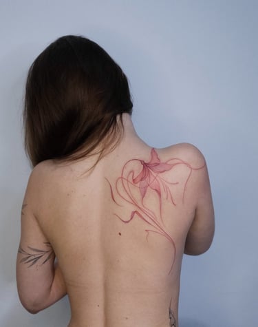 My style is guided by an intuitive reading of the body, and respect for natural body form. Shapes, lines, and colors add a sense of dynamism to my work. Graphic work brings me pleasure, colors always inspire me. Flowers, nature, pop culture are the fundamental elements of my artworks. I am the founder and the resident artist of Bax Tattoo Studio, specializing in fine-line tattoos.